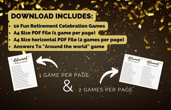 So that is why I have created a printable Retirement Party Game Bundle with 10 amazing party games.